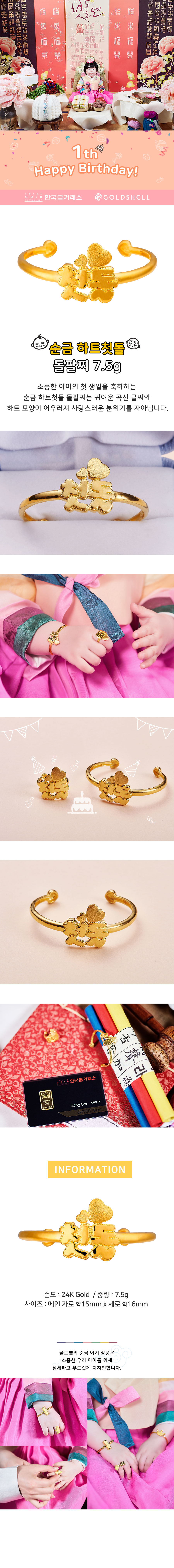 순금 하트첫돌 돌팔찌 7.5g